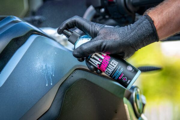 Muc-Off Matt Finish Detailer to specjalistyczny preparat ochronny stworzony z myślą o unikalnych potrzebach matowych lakierów, satynowych wykończeń oraz matowych oklein winylowych. Innowacyjna formuła skutecznie usuwa odciski palców oraz lekkie zabrudzenia, pozostawiając idealnie matowe, wolne od smug i połysku wykończenie. Dzięki zastosowaniu wysokiej jakości składników, środek tworzy ochronną barierę, która ogranicza przywieranie brudu i ułatwia kolejne mycie motocykla.